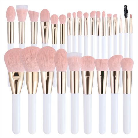 ชุดแปรงแต่งหน้าสีขาวสีชมพู16ชิ้น24ชิ้นแปรงแต่งหน้าไม้จริงขนแพะรองรับการปรับแต่ง